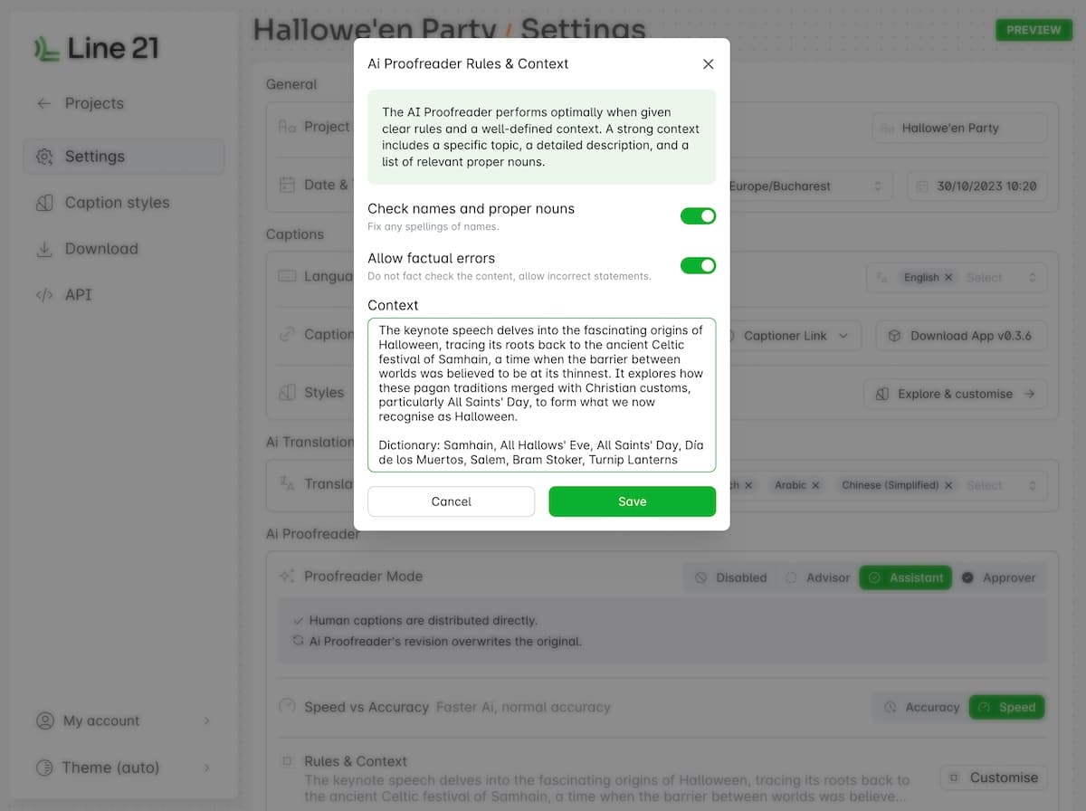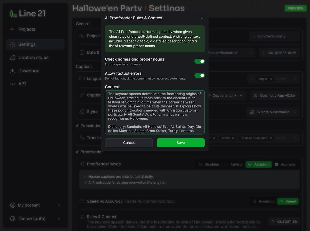 Line 21's AI Proofreader is a dynamic safeguard for audiences everywhere. It respects the context, adapts to the content, and delivers captions that don’t compromise. With the power to understand and adapt, empower your audience to participate fully, and ensure that the text on screen is the message intended.